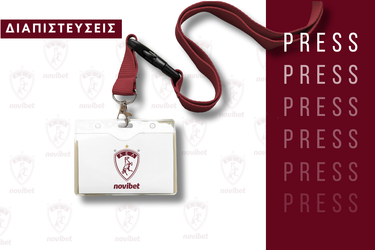 Ενόψει του εντός έδρας αγώνα με αντίπαλο τον ΠΑΟΚ, για τη 22η Αγωνιστική της Stoiximan Super League, που θα διεξαχθεί την Κυριακή 22 Φεβρουαρίου και ώρα 18:00 στο AEL FC ARENA, η ΠΑΕ ΑΕΛ Novibet ενημερώνει τους εκπροσώπους των ΜΜΕ ότι θα εκδώσει ονομαστικές, ημερήσιες διαπιστεύσεις.