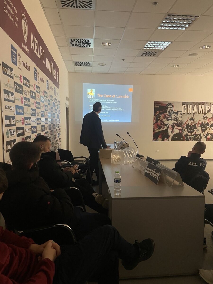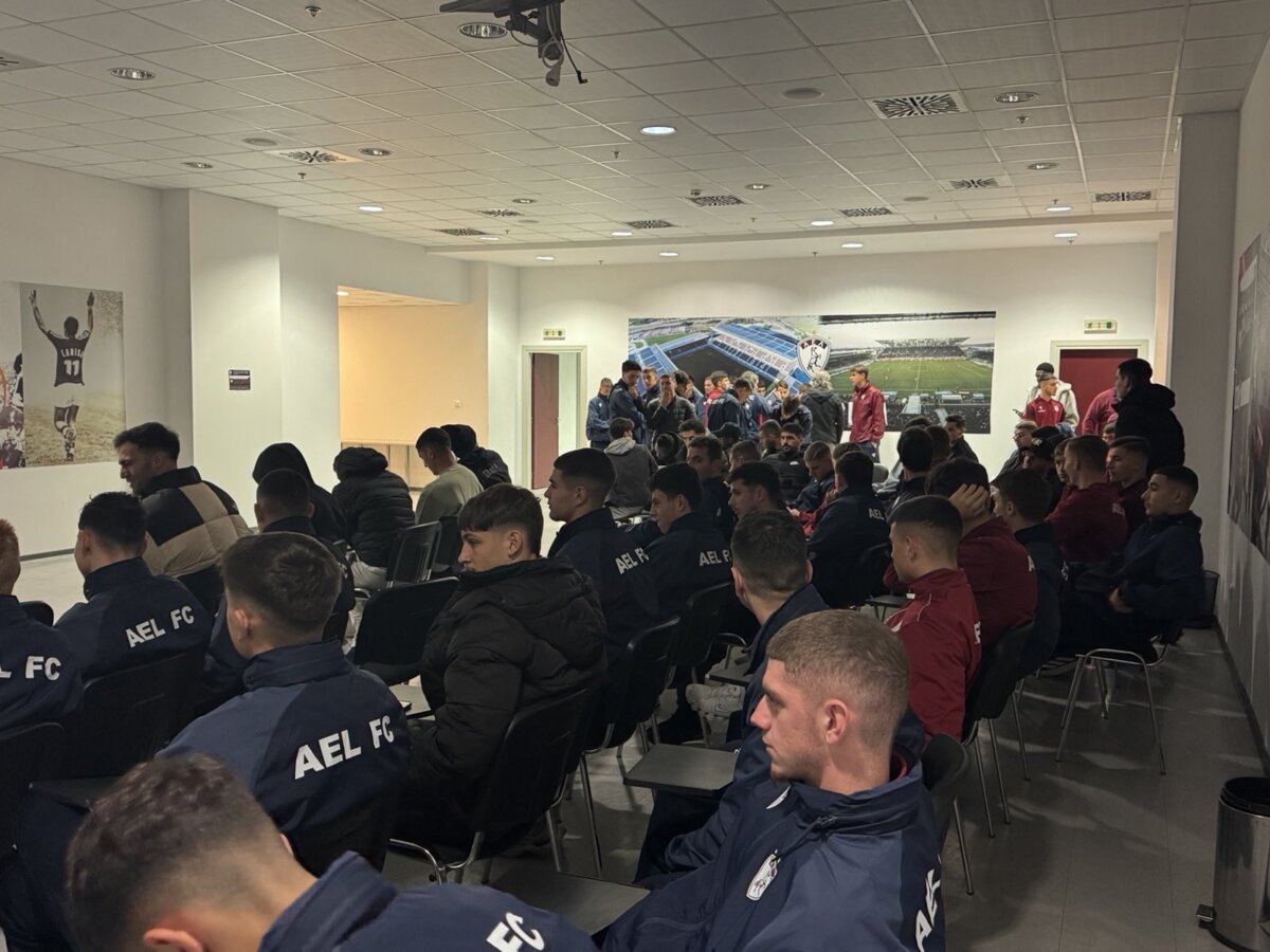 Οι ποδοσφαιριστές της ΠΑΕ ΑΕΛ Novibet, Ανδρική ομάδα, Κ15, Κ17 και Κ19 , μαζί με τα τεχνικά τους επιτελεία παρακολούθησαν σεμινάριο για το anti-doping και την ιατροφαρμακευτική φροντίδα των ποδοσφαιριστών στην αίθουσα τύπου του AEL FC ARENA.