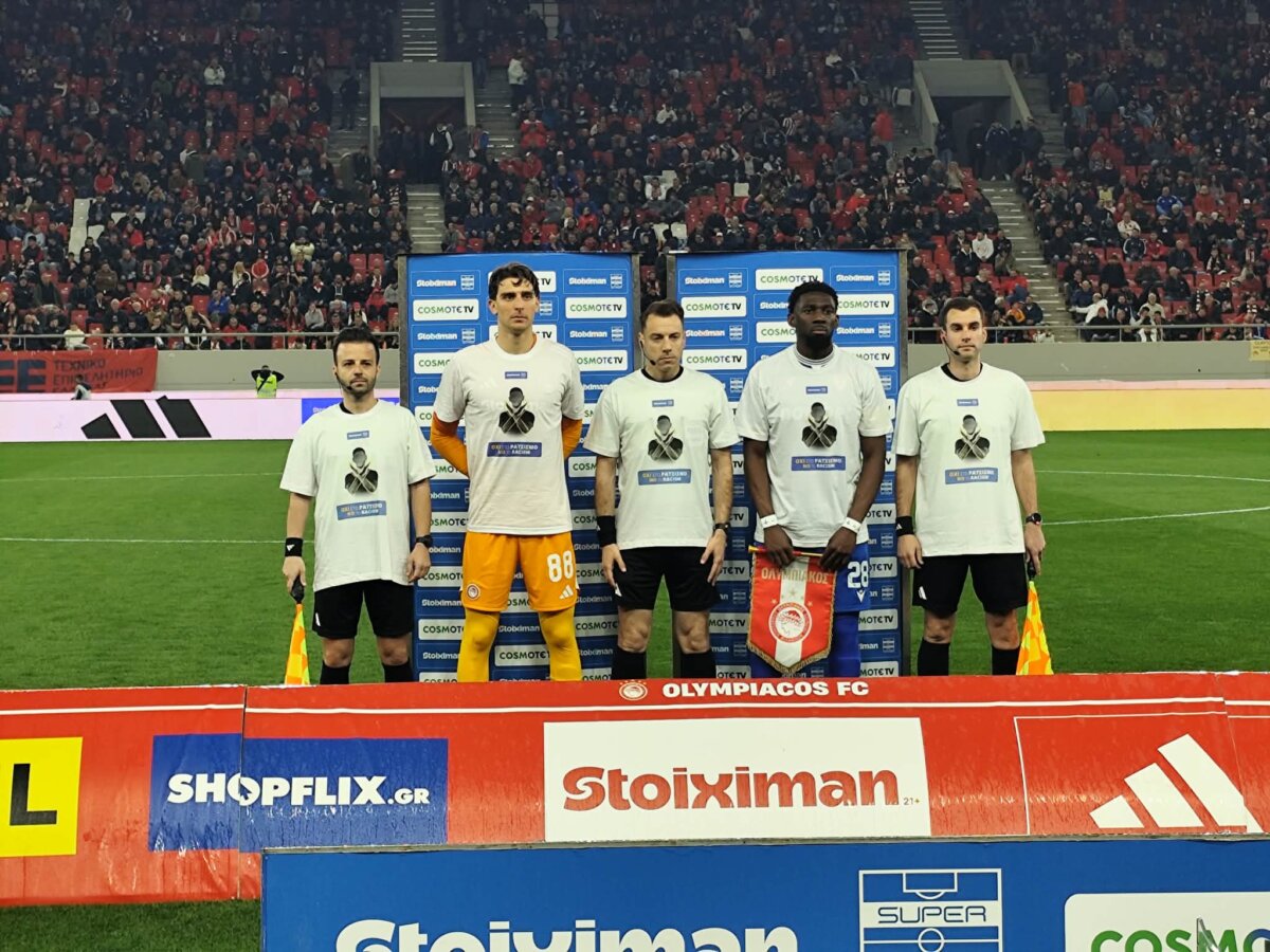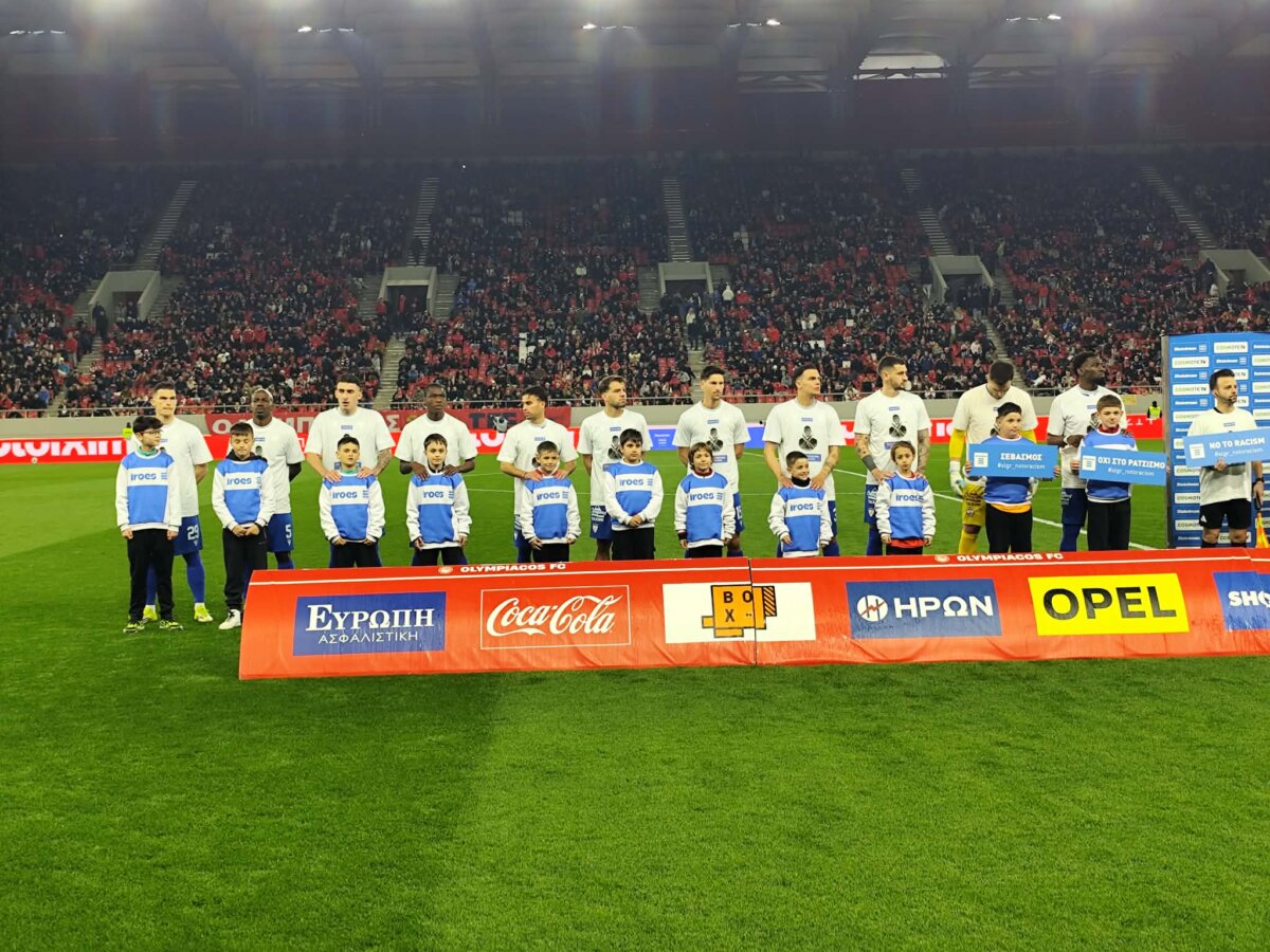 Οι ποδοσφαιριστές μας ως φιλοξενούμενοι από τους αντίστοιχους γηπεδούχους του Ολυμπιακού και οι διαιτητές, κατά την είσοδό τους στην παράταξη των ομάδων, φόρεσαν ειδικά μπλουζάκια και κράτησαν πινακίδες με μηνύματα κατά του ρατσισμού και πινακίδες θετικών μηνυμάτων, για την ανθρωπιά, την αλληλεγγύη, το σεβασμό, την ανεκτικότητα, τη διαφορετικότητα και την ισότητα.